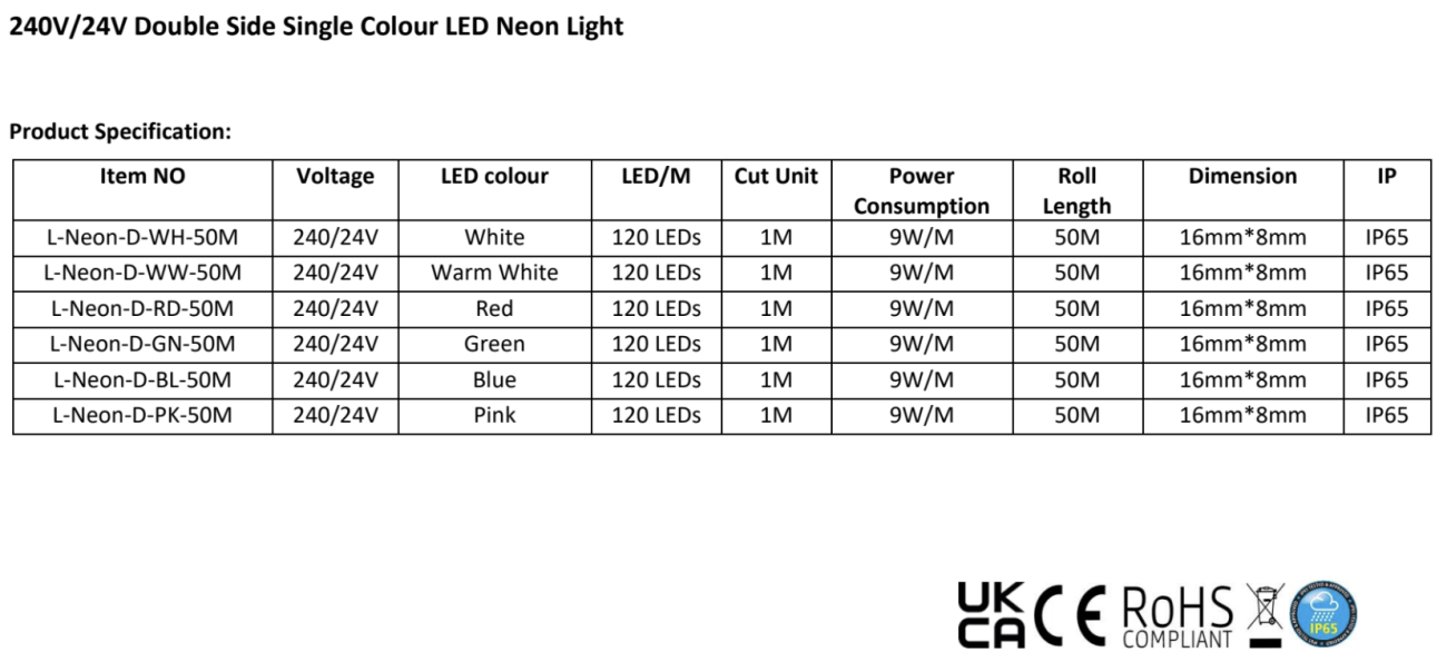 Super brillant et flexible, facile à plier pour créer des signes différents, double éclairage latéral 240V, un câble d'alimentation peut parcourir 50m de long, peut être coupé tous les 1 mètre, IP65, utilisation intérieure et extérieure.